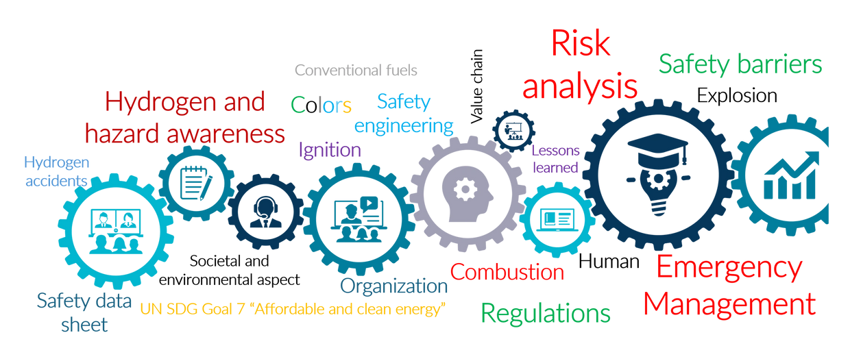 Key terminologies, hydrogen hazards, various risk and hazard identification methodologies, frequency and consequence analysis techniques, and strategies for risk evaluation and mitigation.